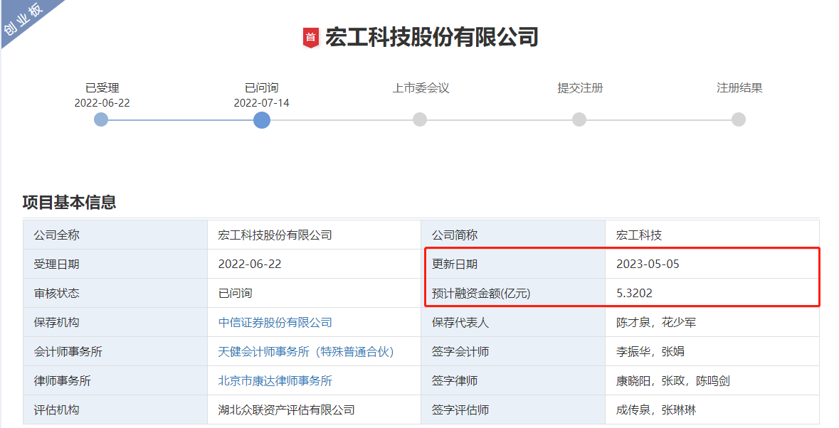5月5日,來自廣東東莞的宏工科技股份有限公司(簡稱“宏工科技”)更新了招股說明書,并將于5月12日創業板IPO上會。