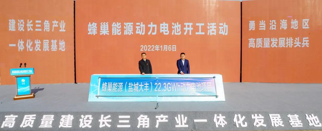1月6日,蜂巢能源在江蘇省鹽城舉行了蜂巢能源動力電池項目開工儀式,迅速推動工廠基地投入建設。