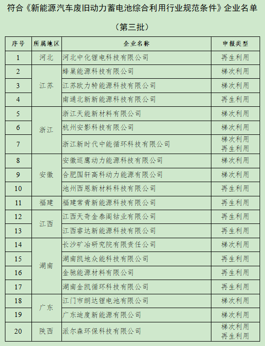 第三批廢舊動力電池回收行業規范企業白名單公布!