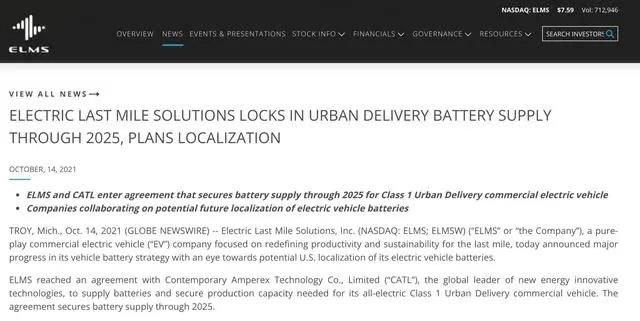 當地時間10月14日,在美上市的電動汽車公司Electric Last MileSolutions, Inc.在其官網宣布,已與寧德時代達成協議,后者將為其全電動商用車提供電池并確保生產能…