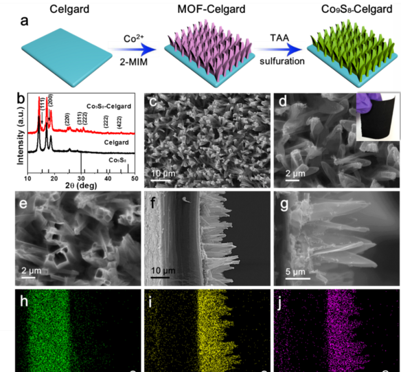 最近,德州大學(xué)奧斯汀分校A. Manthiram教授和電子科技大學(xué)陳遠(yuǎn)富教授研究團(tuán)隊(duì)在商業(yè)Celgard隔膜上,原位垂直生長(zhǎng)高導(dǎo)電、極性的空心Co9S8納米陣列(Co9S8/Celgard…