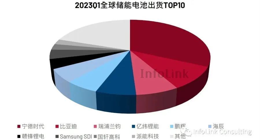 近日,權威第三方咨詢機構InfoLink發布2023年Q1全球儲能電池出貨量TOP10企業榜單,總計達到43.9 GWh的出貨量,中國儲能電池企業占據十強中的九席,傲視全球。