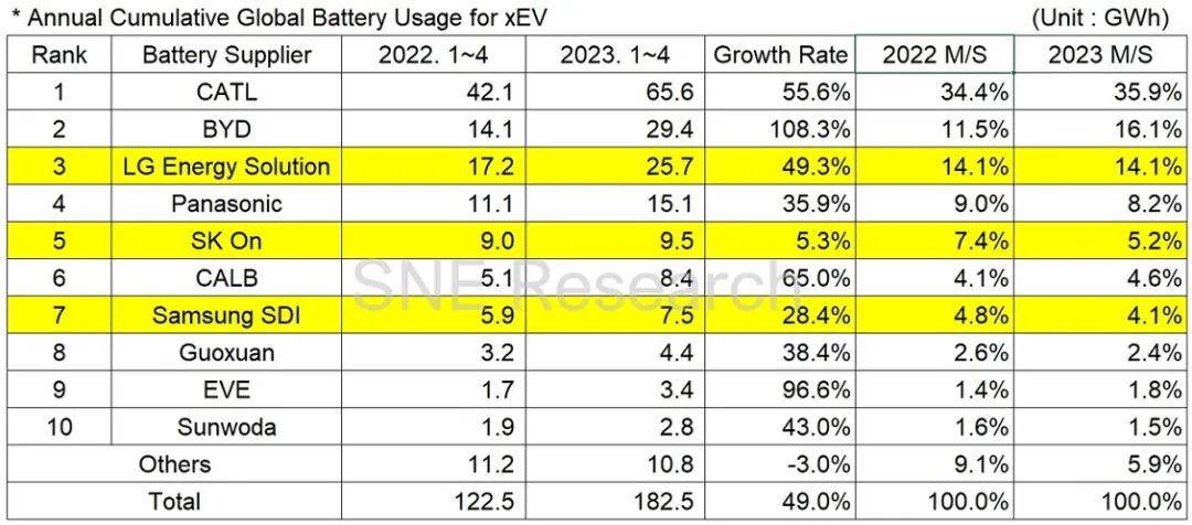 1-4月全球動力電池裝車量TOP10出爐!