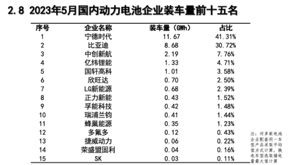 5月國內動力電池裝車量TOP15出爐!