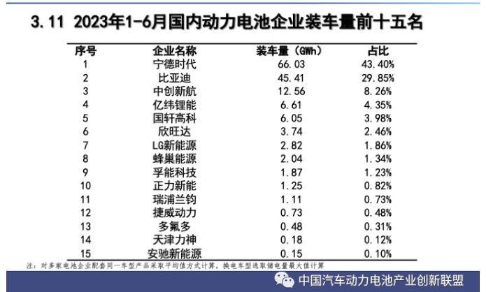 1-6月國內動力電池裝車量TOP15出爐!