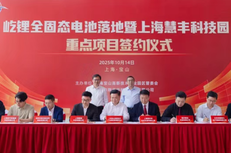 10月14日,上海屹鋰新能源科技有限公司(簡稱:屹鋰科技)全固態電池落地儀式暨上海慧豐科技園重點項目簽約活動順利舉行。