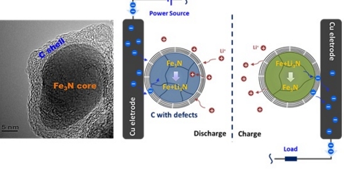 該項研究針對鋰離子二次電池在循環過程中活性物質嚴重體積膨脹造成電極粉化失效的瓶頸問題,提出了碳約束氮化鐵納米核殼結構。實驗證明,在500次循環中電池仍能維…