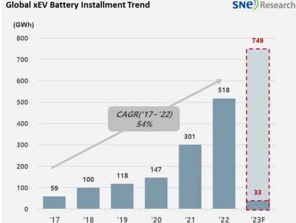 3月6日上午,全球資訊機構SNE research發布了2023年1月的全球動力電池裝車數據。1月,全球電動汽車(EV、PHEV、HEV)的電池裝車量為33.0GWh,同比增加18.1%。