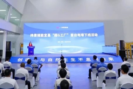 7月29日上午,緯景儲能湖北宜昌“超G工廠”首臺電堆在宜昌猇亭區順利下線。