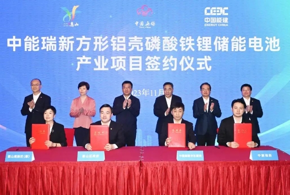 此次簽約的中能瑞新方形鋁殼磷酸鐵鋰儲能電池產業項目,由中國能建下屬中能瑞新(深圳)能源科技有限公司開發,分兩期建成40GWh儲能電池研究及生產建設項目。