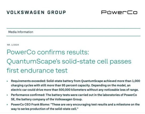 PowerCo通過親手實驗證實,QuantumScape的無負極(anodeless)固態電池樣本,能夠做到充放電1000次,且在測試完成時電池“幾乎沒有老化”,仍保持95%的容量(或者…