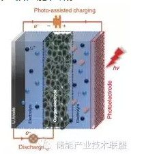 此前該課題組還曾利用相似的概念開發出新型太陽能鋰空氣電池。該電池將染料敏化光電極與鋰空氣電池的氧電極組合在一起,實現對鋰空氣電池的光支持充電(photo-assisted ging),大幅降低了充電過程中由于Li2O2分解困難而造成的過電勢,提高循環效率、避免氧電極性能衰減。