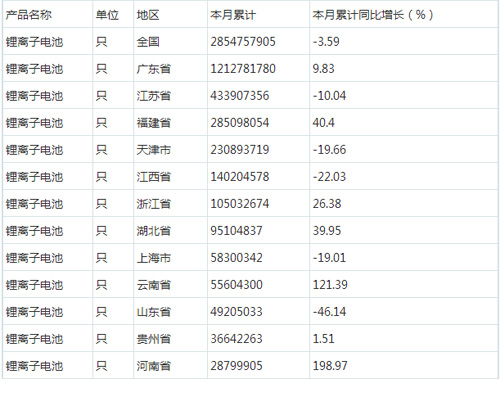 前瞻產業研究院數據顯示:2015年1-7月生產鋰離子電池28.55 億只,同比下降3.59 %。