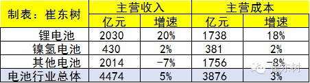 從電池行業的成本看,成本壓力較小,鋰電池的成本增長慢于收入增長兩個百分點;鎳氫電池的也是稍慢,鉛酸等其他電池的成本下降快于收入下降1個點。行業運行狀態總體很好。