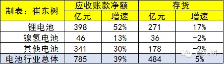 電池行業的資金壓力較重,這也是整個新能源產業鏈的共同特征。電池行業的應收賬款和存貨增長較快,尤其是鋰電池企業的應收賬款增長較快,達到398億元,接近兩個月的銷量,欠款占壓較嚴重。而電池行業的存貨增長也較快,這也是行業高速發展的正常特征。而其他電池行業的應收賬也增長較快,這也是有較大的壓力的。
