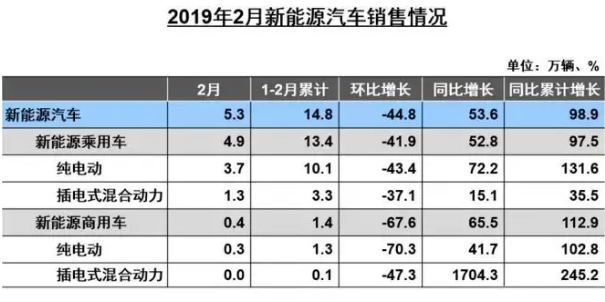 2月,新能源汽車產銷分別完成5.9萬輛和5.3萬輛,比上年同期分別增長50.9%和53.6%。