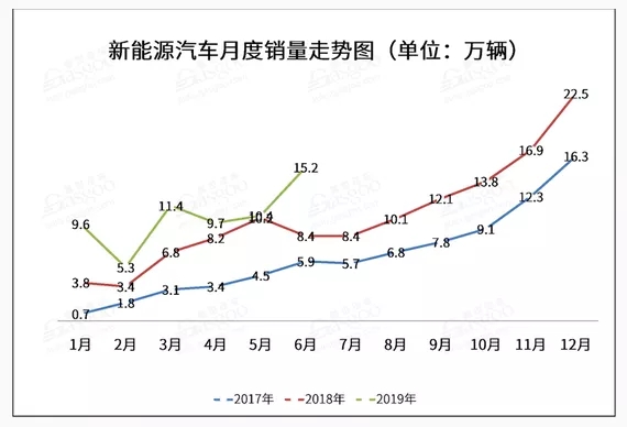 2019年前6月,新能源汽車產銷分別完成61.4萬輛和61.7萬輛,比上年同期分別增長48.5%和49.6%。