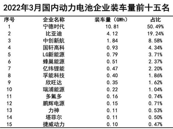 統(tǒng)計(jì)數(shù)據(jù)顯示,共計(jì)39家國(guó)內(nèi)企業(yè)在當(dāng)月實(shí)現(xiàn)動(dòng)力電池裝車,排名前三位的分別為寧德時(shí)代、比亞迪和中創(chuàng)新航,與2月一致。