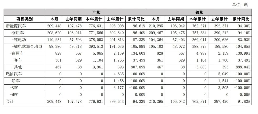 [摘要]比亞迪在港交所發(fā)布公告稱,4月新能源汽車銷量210295輛,同比增長約98.3%。