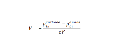 在平衡狀態下,鋰離子電池的嵌入電壓定義為正負極兩端的Li化學勢之差,即