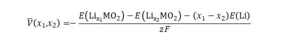 其中為嵌入反應過程體系的總吉布斯自由能變化。在不考慮溫度及體積變化的情況下,可以近似為。以鋰金屬為負極,正極材料為過渡金屬氧化物LiMO2的平衡電壓則可以計算為