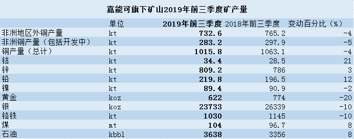 嘉能可今年8月宣布,將剝離其在非洲的銅礦業(yè)務(wù)。在非洲,該公司面臨一系列問題,以及3.5億美元的巨額虧損,因全球鈷價(jià)暴跌。 嘉能可表示,不包括非洲,2019年其全年銅產(chǎn)量預(yù)計(jì)為1,010公斤,上下浮動(dòng)25公斤。
