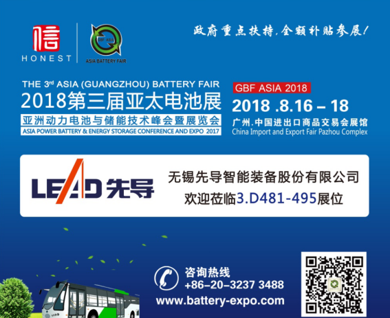 無錫先導智能裝備股份有限公司 將隆重出席8月16-18日在廣州琶洲.廣交會展館A區舉辦的GBF.ASIA 2018第三屆亞太電池展。