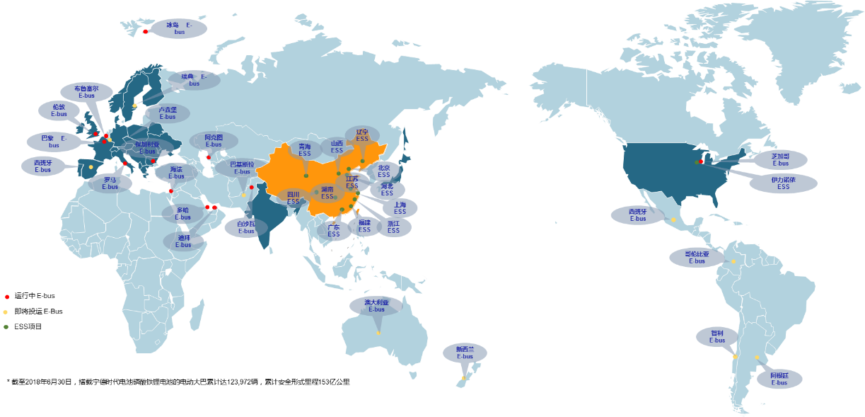 寧德時代CATL磷酸鐵鋰電池全球分布圖