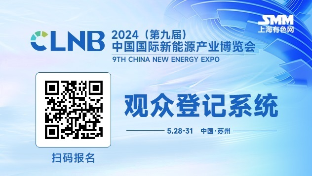 [摘要]2024年5月28日-31日,CLNB 2024(第九屆)中國國際新能源產業博覽會將在蘇州國際博覽中心隆重舉行。大會由SMM上海有色網主辦,以為“智啟雙碳 綠動未來”為主題,集“會議、展覽、賽事、活動”于一體,將舉辦主論壇開幕式、企業家沙龍、專業學術論壇等系列活動。