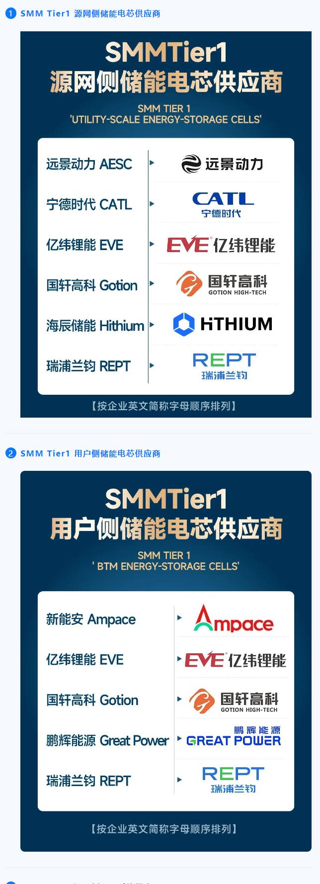 l SMM Tier1源網側儲能電芯供應商