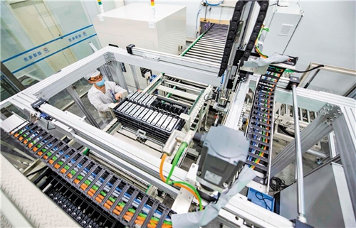 圖為新余市高新區一家鋰電科技公司的智能化電池裝卸注液車間。