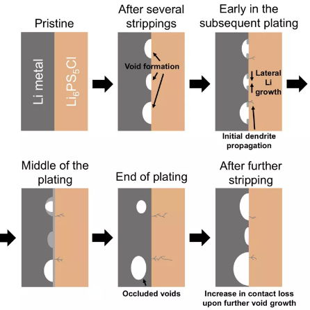很久之前,研究人員就知道固態電池的陽極會產生孔隙,但是人們還沒有理解此類孔隙在枝晶形成過程中的作用。該研究將前沿電化學和成像技術相結合,基本能夠理解孔隙在電池循環中形成,以及孔隙在電池枝晶生長以及電池故障中的作用。