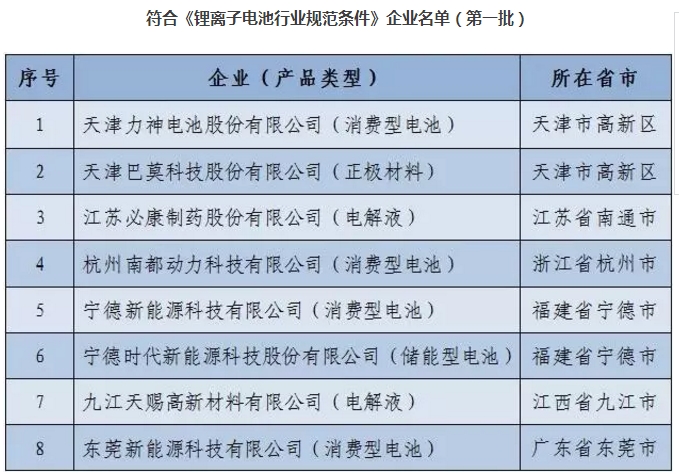 符合《鋰離子電池行業(yè)規(guī)范條件》企業(yè)名單(第一批)