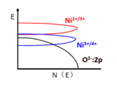 進一步的分析和實驗數據表明,當Ni2+形成更高價態Ni3+后,其3d電子能級與O2-:2p的能帶逐步接近,這意味著兩者的軌道可通過進一步雜化實現整體能量的降低。