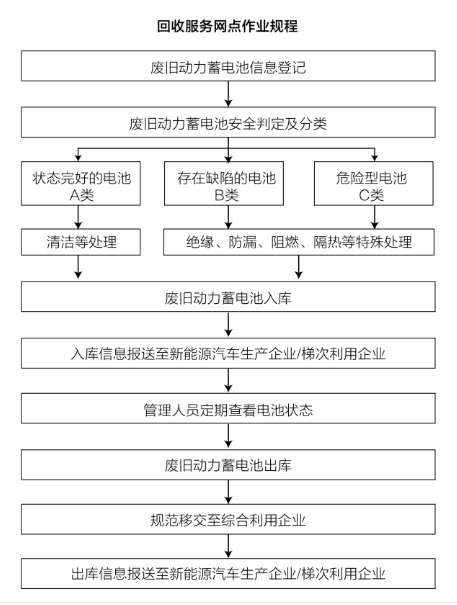 指南中規定了回收服務網點只負責收集、分類、貯存及包裝廢舊動力蓄電池,不得擅自對收集的廢舊動力蓄電池進行安全檢查外的拆解處理。廢舊動力蓄電池應規范移交至綜合利用企業進行梯次利用或再生利用。可以預見,未來多數動力電池回收網點都會是車企與梯次利用企業共建共用的。