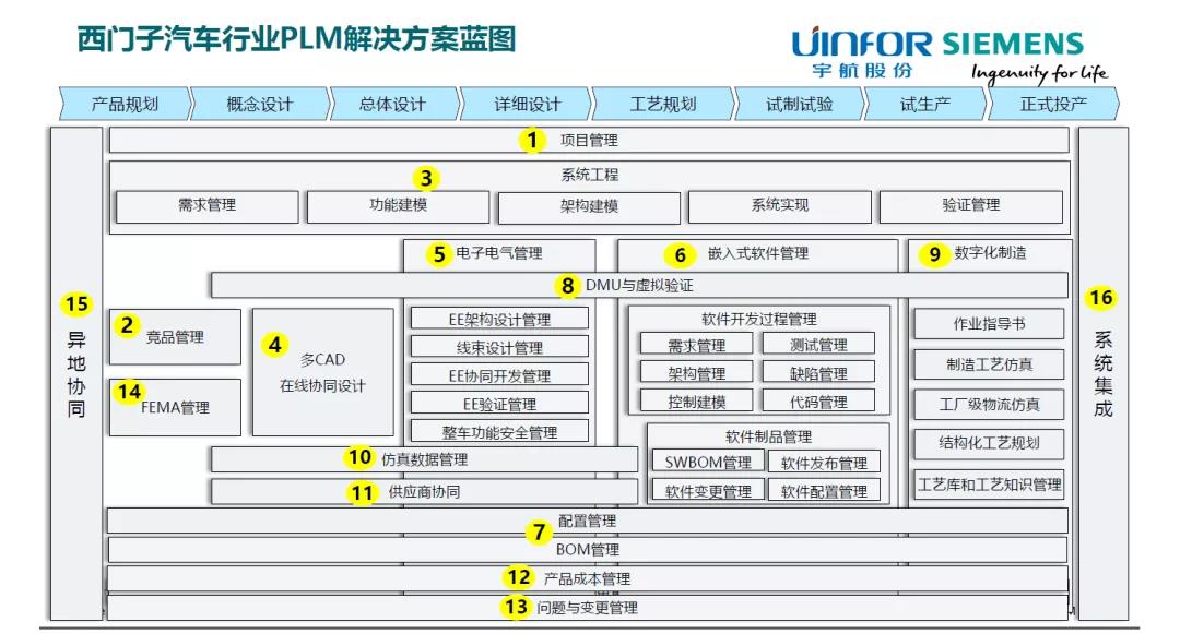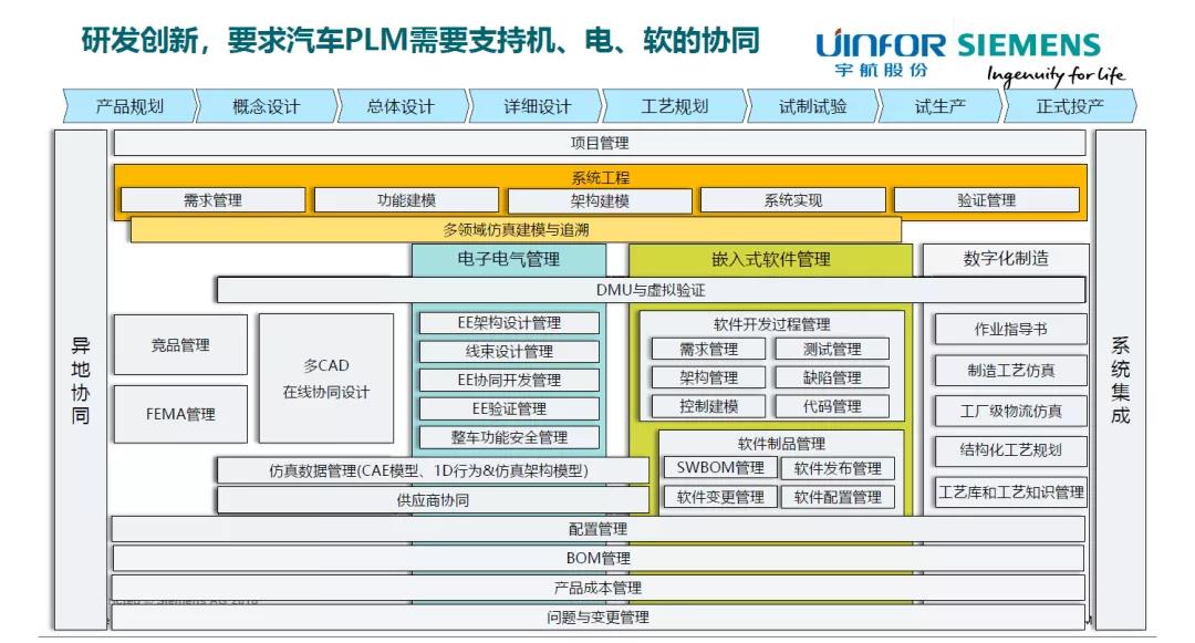 宇航聯(lián)合西門子打造的新能源汽車行業(yè)PLM解決方案,通過西門子Teamcenter平臺(tái),定位于“立足基礎(chǔ)、全盤考慮、搭建框架、初見成效”,重在構(gòu)建全面、穩(wěn)健、實(shí)用的協(xié)同產(chǎn)品研發(fā)平臺(tái),幫助企業(yè)規(guī)范業(yè)務(wù)流程,推進(jìn)流程再造和項(xiàng)目管理,提升整體管理水平,是車企信息化改造、智能制造的新起點(diǎn)。