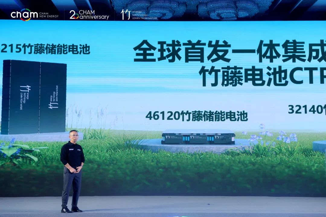 隨后,創明副總裁謝冬生揭曉了本次發布會備受行業關注的,全球首發一體集成竹藤電池CTP1.0系列產品——46120竹藤儲能電池、32140竹藤鈉離子小動力電池、46215竹藤儲能電池。