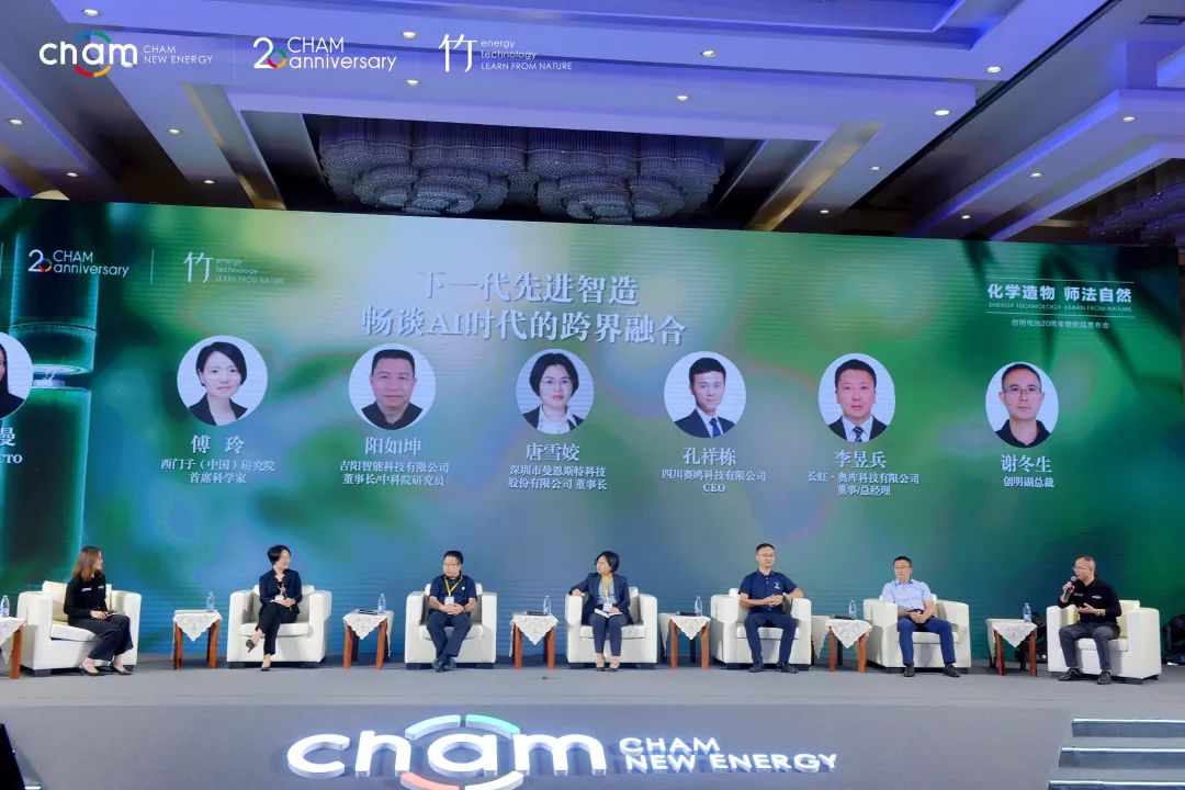 隨著發布會的火熱進行,行業內專家濟濟一堂,圍繞“下一代先進智造——AI時代的跨界融合之道”的主題,進行了深度對話與探討,西門子(中國)研究院、首席科學家傅玲,吉陽智能科技有限公司董事長、中科院研究員陽如坤,四川賽鷗科技有限公司CEO孔祥棟,深圳市曼恩斯特科技股份有限公司董事長唐雪姣,長虹·奧庫科技有限公司董事、總經理李昱兵——五位嘉賓在創明副總裁謝冬生與創明電池CTO 趙悠曼的主持下坐而論道,圍繞數字孿生、智能制造、跨界融合、創新生產等多元角度進行圓桌對話,坦誠交流智慧分享,共同為即將來到的智能化大時代儲能電池的發展賦能助力。