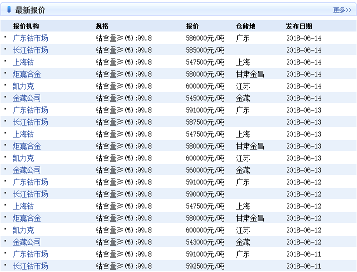 研究機構(gòu)曝光的近幾日的鈷價