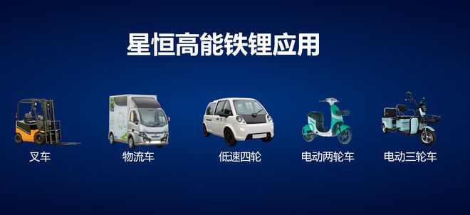 星恒新一代高能鐵鋰產(chǎn)品瞄準(zhǔn)叉車、物流車、低速四輪、電動(dòng)兩輪和電動(dòng)三輪車等特殊化場(chǎng)景與品類應(yīng)用。