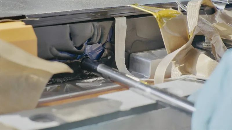 試驗(yàn)結(jié)果顯示,磷酸鐵鋰(普通電池)整包在鋼針刺入電芯觸發(fā)熱失控后,出現(xiàn)了電壓下降、溫度上升現(xiàn)象,最高溫度為329.4℃,且出現(xiàn)冒煙現(xiàn)象,持續(xù)16分鐘;而磷酸鐵鋰(彈匣電池)整包被刺后,最高溫度僅51.1℃,靜止48小時(shí)后,單體電壓降至0V,溫度降為室溫,且無(wú)冒煙、無(wú)起火和爆炸現(xiàn)象,電池包狀態(tài)穩(wěn)定。打開電池系統(tǒng)外殼,其內(nèi)部結(jié)構(gòu)完好。