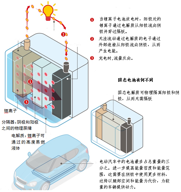 圖1 鋰電池和固態電池工作原理的區別 來源:賽迪智庫整理,2021.6.7