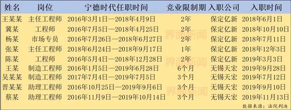 2019年7月至11月間,上述四人陸續(xù)加入無錫天宏,同樣早于各自的競業(yè)限制期結(jié)束前。他們的競業(yè)限制期為3至6個(gè)月不等。