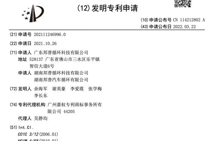 近期寧德時(shí)代及其關(guān)聯(lián)公司廣東邦普循環(huán)科技有限公司的多項(xiàng)鈉離子電池相關(guān)專利被公開,其產(chǎn)業(yè)鏈布局進(jìn)一步清晰。