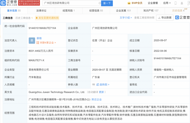 公開資料顯示,巨灣技研成立于2020年9月,是廣汽集團(tuán)首家內(nèi)部孵化技術(shù)創(chuàng)新公司,由廣汽集團(tuán)牽頭,廣汽資本、廣汽研究院先導(dǎo)技術(shù)團(tuán)隊(duì)與第三方戰(zhàn)略伙伴持股平臺共同出資成立。巨灣技研研發(fā)的5-8分鐘充電80%的“超級快充三元軟包鋰電池”(3C/6C版),已于廣汽埃安AION V Plus車型實(shí)現(xiàn)量產(chǎn),創(chuàng)造了“最快電動汽車充電技術(shù)”的世界紀(jì)錄。