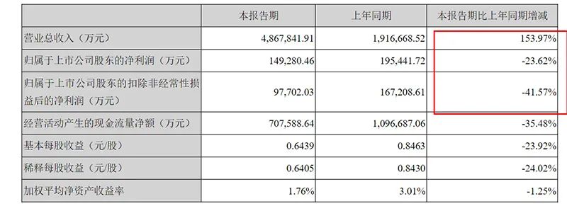 當天下午,寧德時代披露了一季報,公司第一季度實現營業收入486.78億元,同比增長154%,實現歸屬于上市公司股東的凈利潤14.93億元,同比下降了23.62%,實現扣除非經常性損益后的凈利潤為9.77億元,同比下降了41.57%。