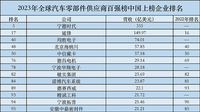 6月28日消息,日前外媒《美國汽車新聞》(Automotive News)發(fā)布了2023年全球汽車零部件供應(yīng)商Top 100榜單。