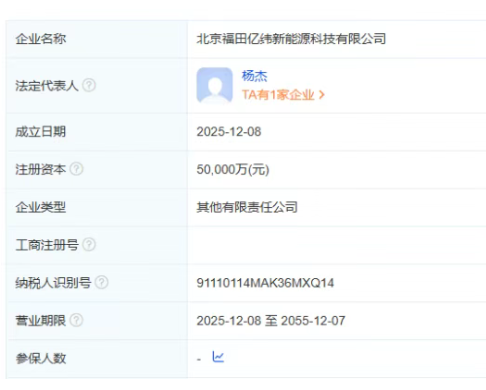 股權穿透顯示,該公司由億緯鋰能、福田汽車共同持股。