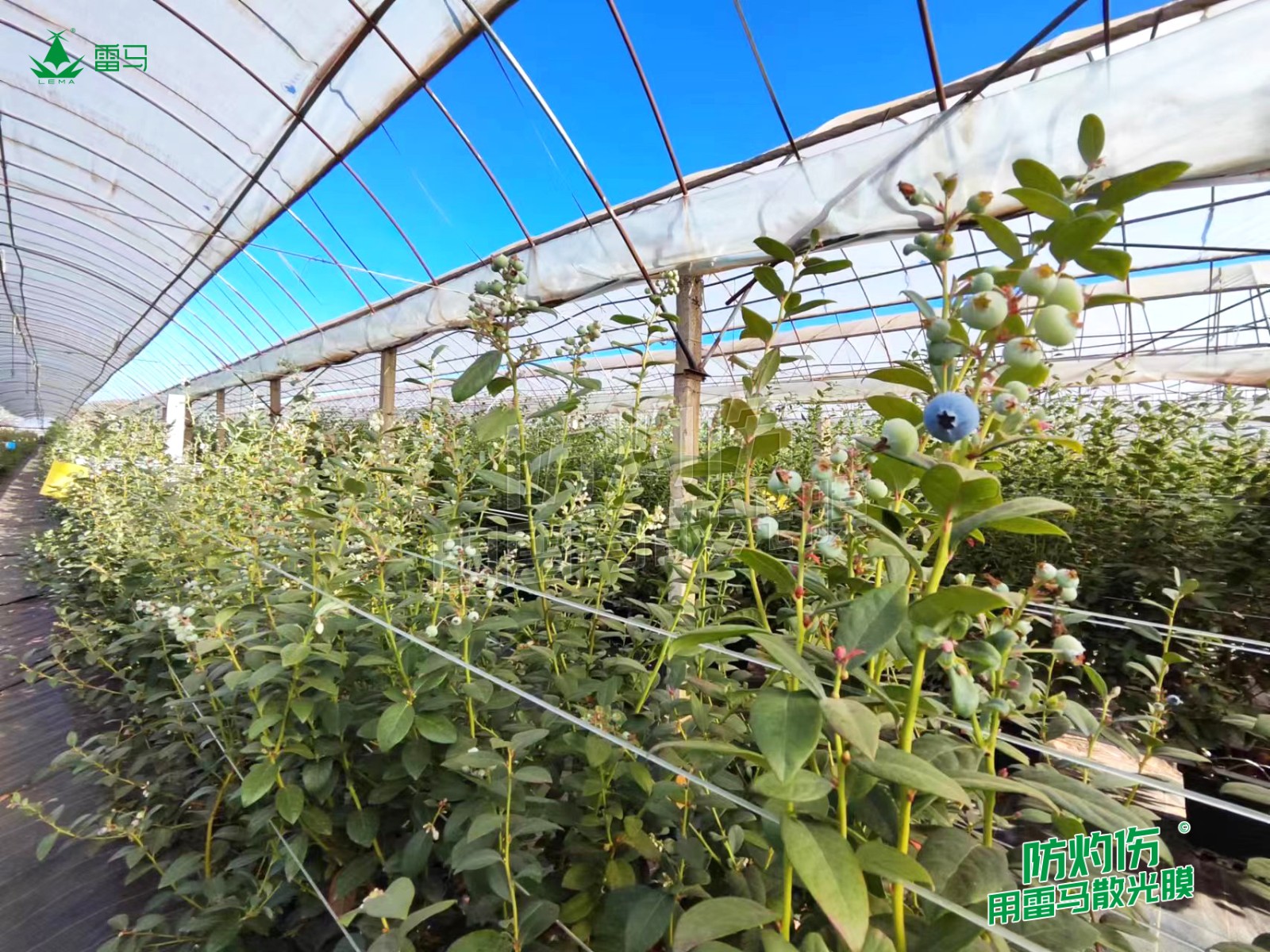 3、高度散射率:可以使溫室內(nèi)的光照和溫度更加均勻,提高藍(lán)莓對光的吸收程度,能最大程度減少直射光對藍(lán)莓及葉片造成的灼傷。